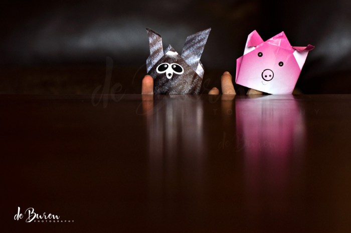 enjoying a finger puppet show,