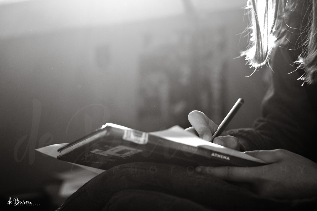 In my constant search for interesting light to photograph, I noticed the window light, reflected beautifully from the white drawing paper to my daughter’s face.